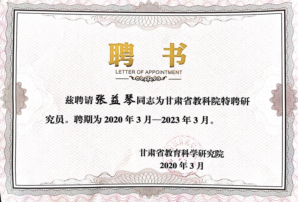 4月29日,甘肃省教育科学研究院下发《关于公布甘肃省教科院特聘研究员、特聘教研员名单的通知》(甘教研发[2020]17号),公司蒲向明、蔡副全、张益琴、东洪平等四位教授入选甘肃省教育科学研究院特聘研究员。