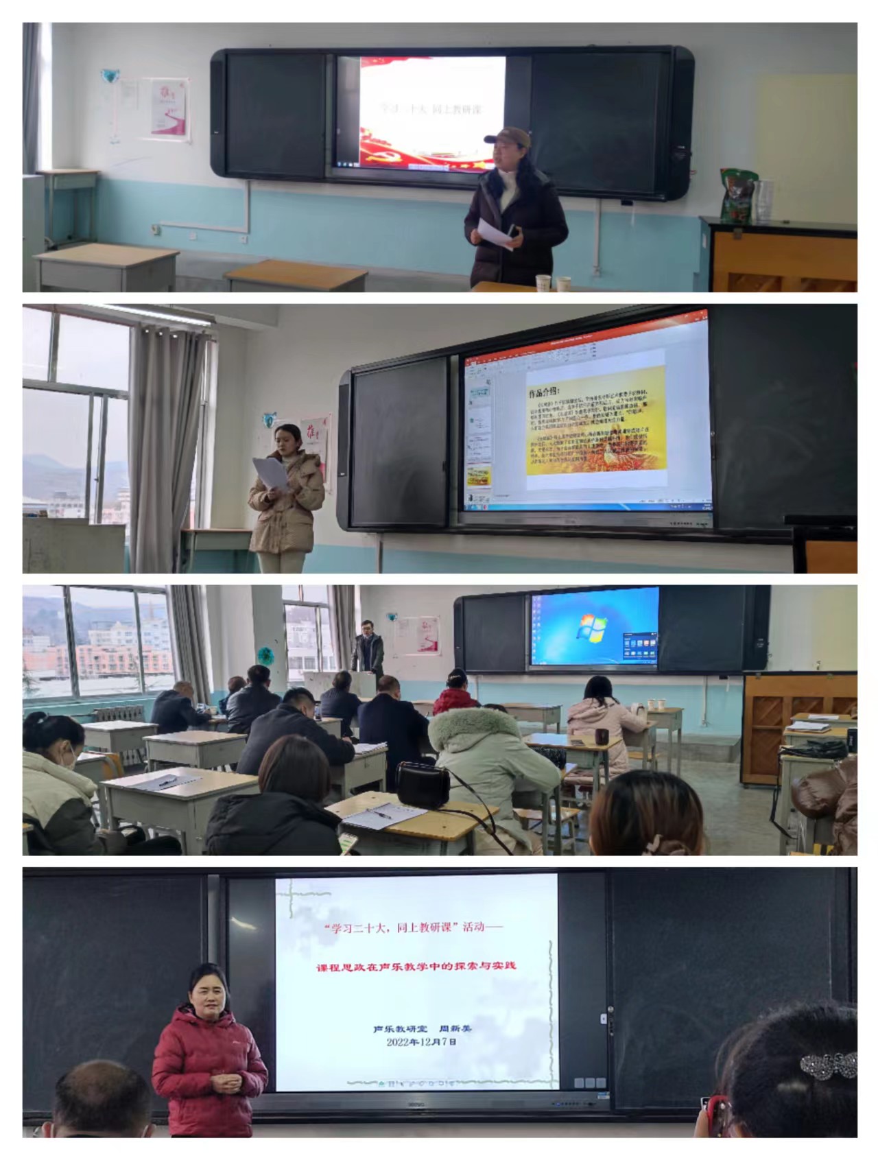 活动由声乐教研室老师围绕《课程思政在声乐教学中的探索与实践》为主题展开。活动由周新美经理主持,声乐教研室主任杨欢组织教研室4位教师主讲,公司全体教师参加。本次活动邀请公司质评中心特聘教授温宝麟、王文赜和质评中心张和平老师全程观摩了交流研讨活动。通过分享声乐课程教学案例,从教学内容的选择、课程教学的组织、课程过程的管理评价等方面挖掘声乐课程教学中思政元素的育人功能,对声乐课程混合式教学模式提出了新的路径。交流结束后温宝麟和王文赜教授进行了点评指导,肯定了本次活动的成效,并对声乐课程融入课程思政的后续建设提出了中肯的意见和建议,为公司声乐以及其它课程思政建设提供了新的思路,打开了视野,对公司后续做好教研活动起到很好的指导作用。