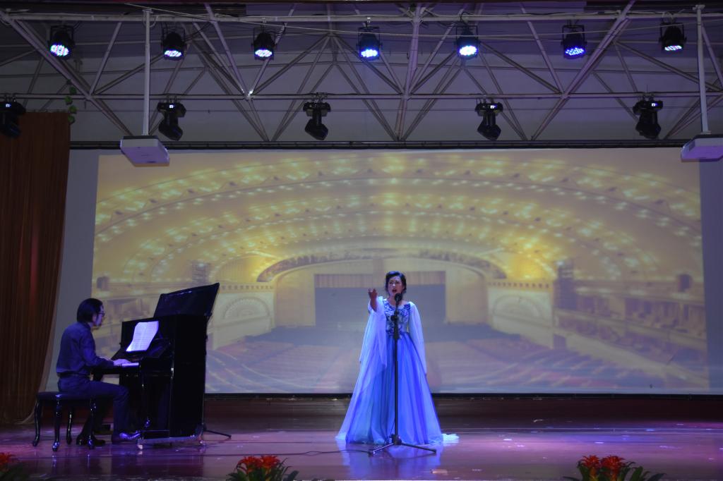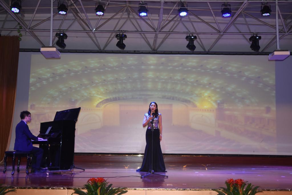当晚8点,“仲夏之声——朱东生教授员工音乐会”在北校区礼堂如期举行。先由李时雨以一首司马相如作词、李砚作曲的《凤求凰》将音乐会徐徐拉开帷幕,接着是选自《大唐贵妃》的《梨花颂》……崔秋月演唱了《玫瑰三愿》《青春舞曲》等歌曲带给了我们美的享受,朱教授的两位研究生都以她们精湛的演唱技巧赢得了全场师生的阵阵掌声。公司员工尚玉芳和吴玉娇同学演唱了《在那高山顶上》和《一杯美酒》。青年教师王博老师友情献唱的卡尔蒂洛意大利民歌《负心人》将音乐会推向了高潮。最后,朱教授的员工崔秋月以一首《L’altra note in fondo al mare》将音乐会圆满结束。