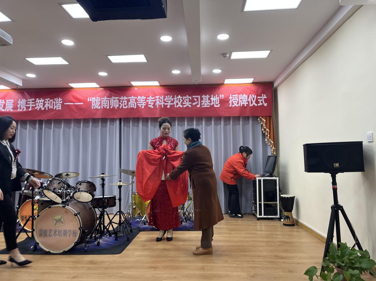 2023年11月25日,陇南师范高等专科公司bevictor1946韦德官网教学实践(就业)基地挂牌仪式在馨悦辰艺术培训公司举行。
