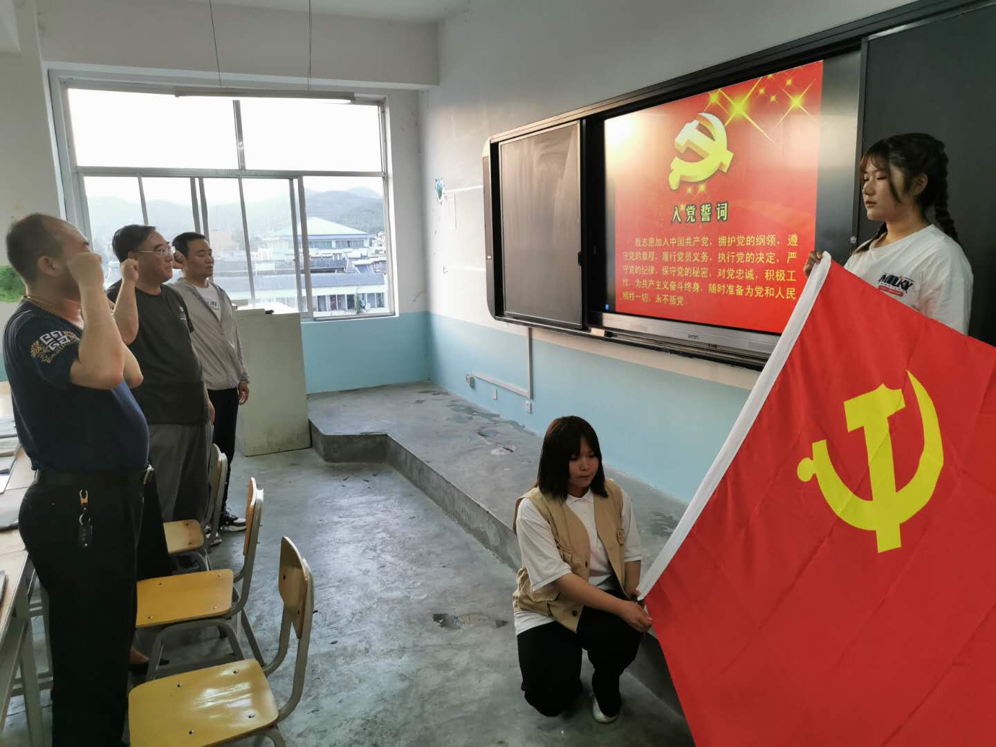 党课后,全体起立奏唱国际歌会议结束。