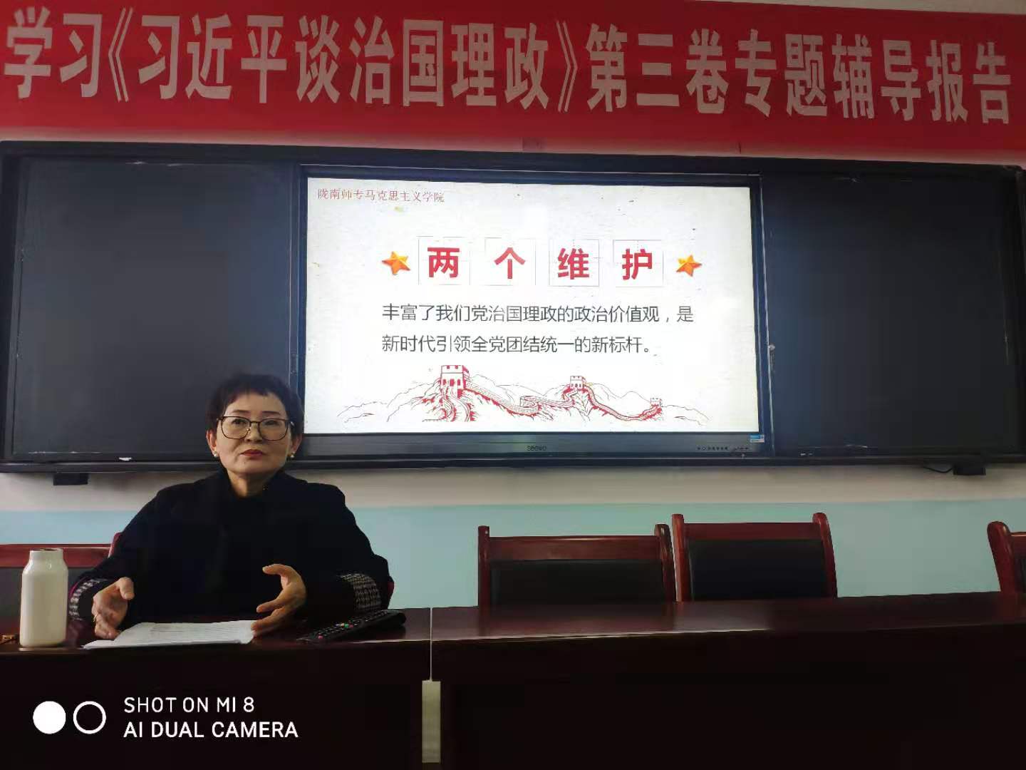 袁滢从两个维护、两个大局、两大奇迹、两大革命、两件大事等五个方面对《习近平谈治国理政》第三卷进行了深入浅出的讲解,系统阐述了《习近平谈治国理政》第三卷的精神实质和核心要义,并要求在学懂、弄通、做实上下功夫,加强课堂思政,用习近平新时代中国特色社会主义思想铸魂育人。