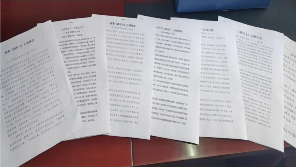 3在观看完节目后,公司两个党支部组织教师、员工分别进行了讨论。此次《榜样5》的主题聚焦2020年度的抗疫,在61分钟的节目中,集中展现了在疫情防控工作中涌现出的2个先进基层党组织和5名优秀共产党员的风采,包括医生、护士、社区干部、快递员、警察等等,他们在不同岗位上从事着不同的工作,但他们始终坚守在防控一线,展现了共产党员敢于牺牲、敢于胜利的大无畏精神,以自己的实习行动践行入党誓词,践行初心使命。节目结束后,教师党支部和员工党支部分别组织支部党员开展了学习讨论,谈自己的感悟,通过观看节目,公司师生纷纷表示,此次疫情防控生动地体现了我们党的人民立场和坚持人民至上的根本价值取向,也生动地体现了中国特色社会主义制度承载的坚持人民至上的价值优势、彰显了党的集中统一领导的政治优势和全国一盘棋的合力优势。广大党员干部表示要以在此次疫情防控中涌现出的先进基层党组织和优秀共产党员为榜样,向模范看齐,进一步提升自己的党性修养,勇于担当、积极作为继续发挥自己的党员先锋模范作用,为公司、为公司的发展贡献自己的力量,以优异的成绩迎接建党100周年。
