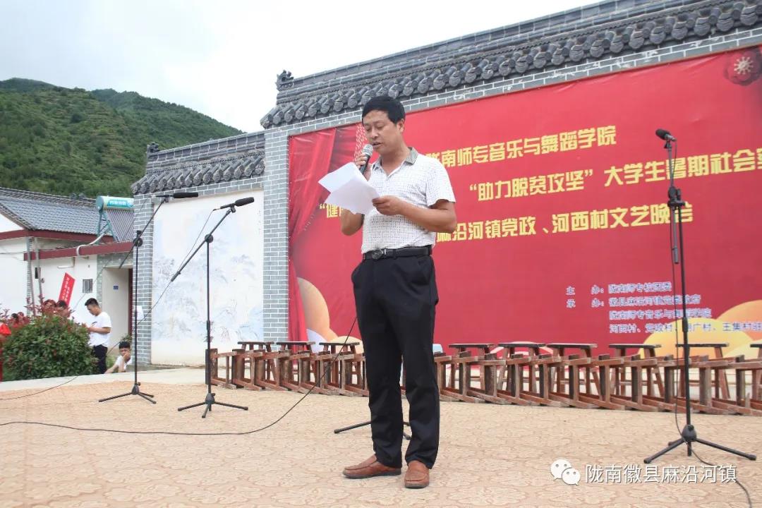 王亚文在致词中讲,今天的文艺演出活动是镇党委政府,三个村驻村工作队和陇南师专为三个村做的一项实事。有利于加强农村精神文明建设,为社会主义新农村建设提供智力支持和精神保障,扩大建设社会主义核心价值体系,同时有利于提高农民的文化素质,解放和发展农村生产力,缩小城乡差距