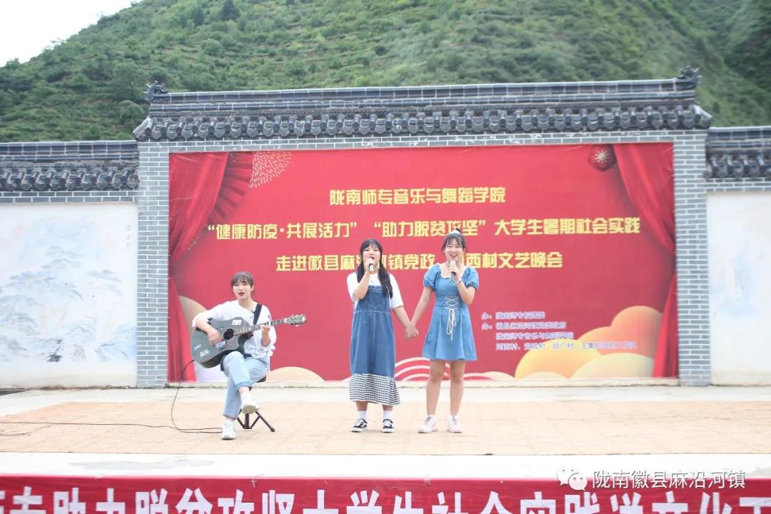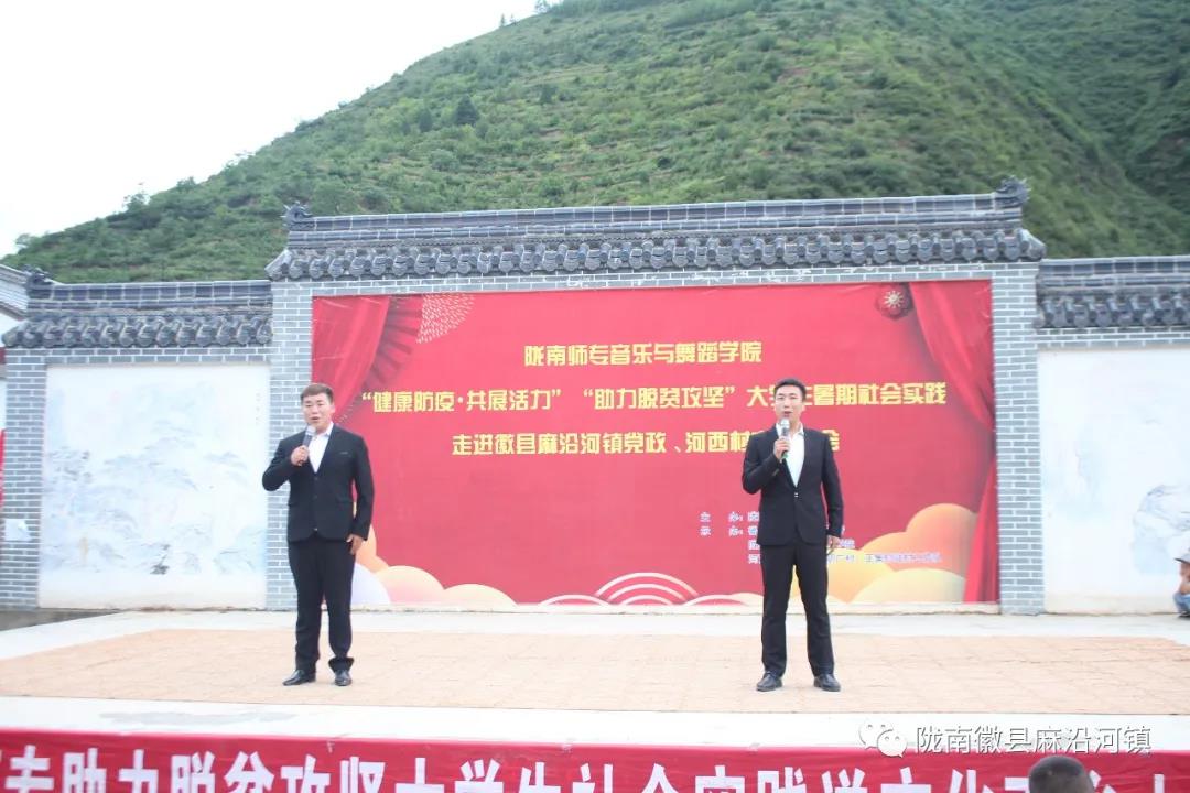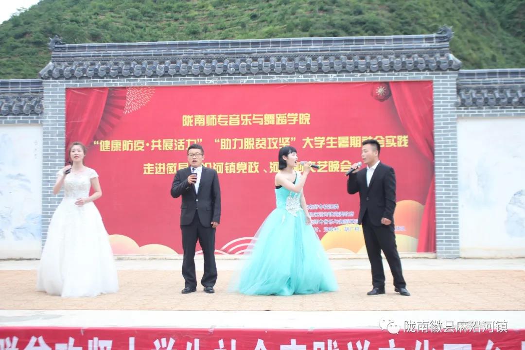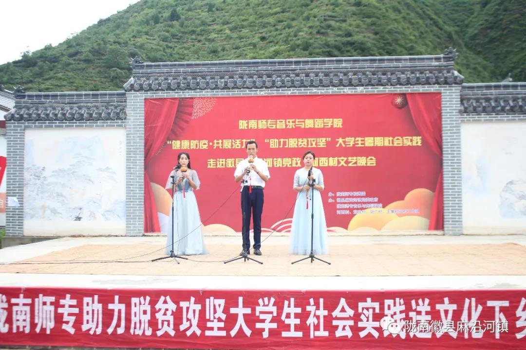 714日,陇南师专bevictor1946韦德官网经理周新美、党总支书记王亚文、副经理王彤彤带领师生,在麻沿河镇党政村文化广场开展了“健康防疫•共展活力”“助力脱贫攻坚”老员工暑假社会实践走进麻沿河镇党政村、河西村文艺演出活动,活动由陇南师专校团委主办,由麻沿河镇党委政府、陇南师专bevictor1946韦德官网、河西村、党政村、胡广村驻村帮扶工作队承办。活动现场,人头攒动,热闹非凡,陇南师专师生用扎实的业务功底和热情的态度,为现场观众表演了精心准备的舞蹈、歌曲、乐器演奏等精彩节目,党政村、河西村群众和各界文艺爱好者也自发组织了表演,现场高潮迭起,掌声雷动。