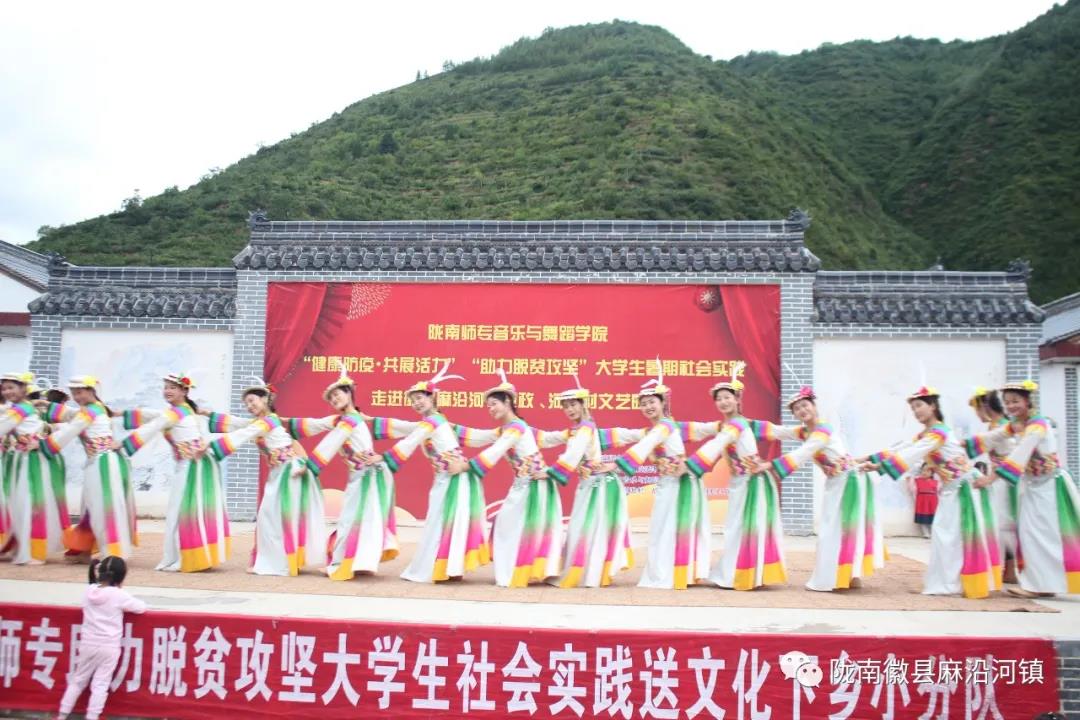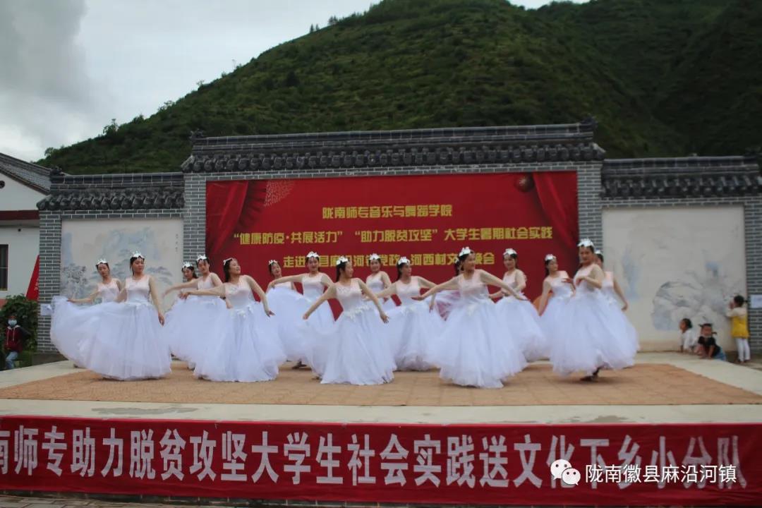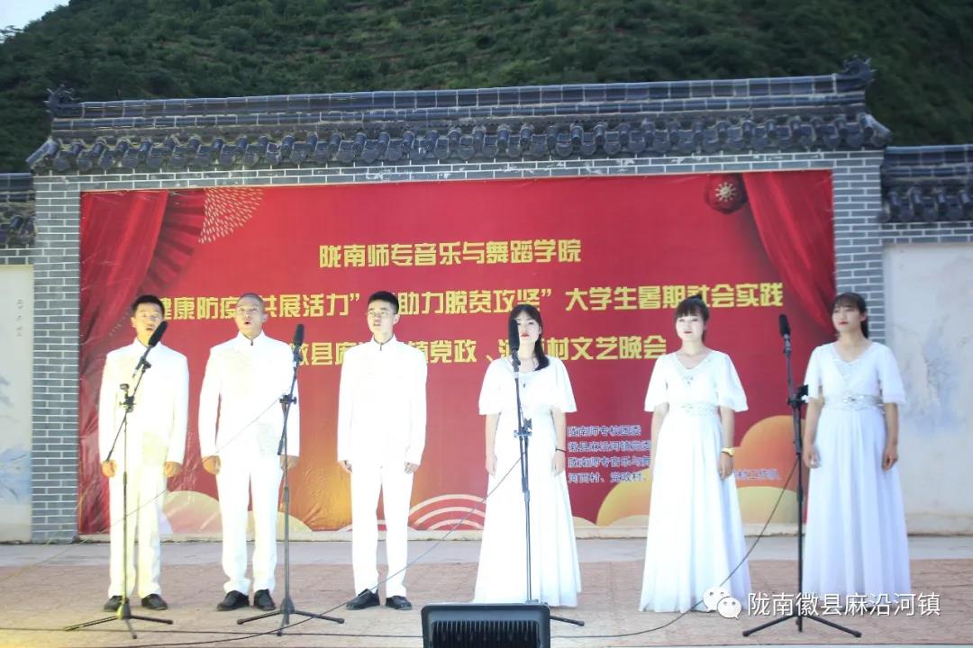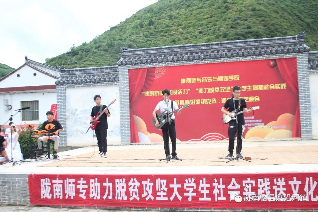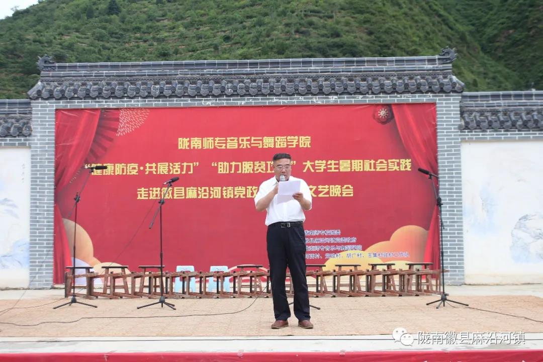 714日,陇南师专bevictor1946韦德官网经理周新美、党总支书记王亚文、副经理王彤彤带领师生,在麻沿河镇党政村文化广场开展了“健康防疫•共展活力”“助力脱贫攻坚”老员工暑假社会实践走进麻沿河镇党政村、河西村文艺演出活动,活动由陇南师专校团委主办,由麻沿河镇党委政府、陇南师专bevictor1946韦德官网、河西村、党政村、胡广村驻村帮扶工作队承办。活动现场,人头攒动,热闹非凡,陇南师专师生用扎实的业务功底和热情的态度,为现场观众表演了精心准备的舞蹈、歌曲、乐器演奏等精彩节目,党政村、河西村群众和各界文艺爱好者也自发组织了表演,现场高潮迭起,掌声雷动。